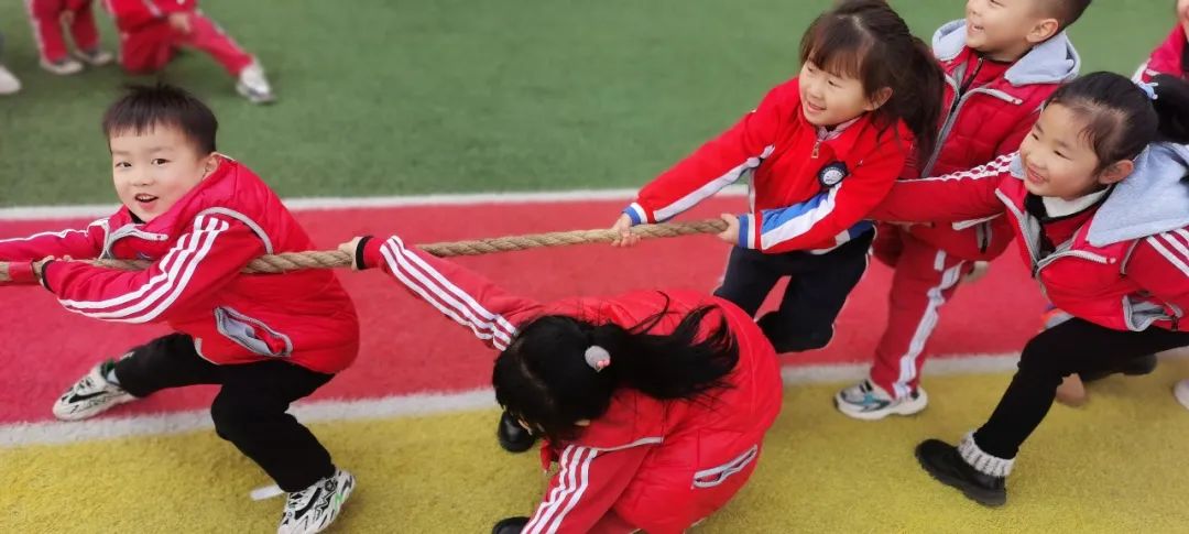 冯特红河谷园区的冬季趣味拔河比赛,为了让孩子们更愿意走出温暖的教室,更加积极地参与户外游戏,让户外游戏变得更为有趣中进行的这个活动。