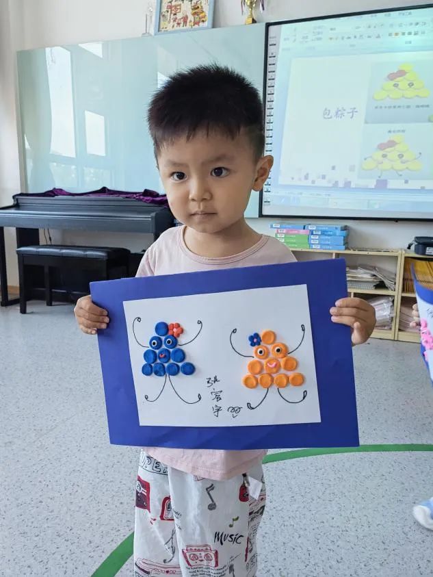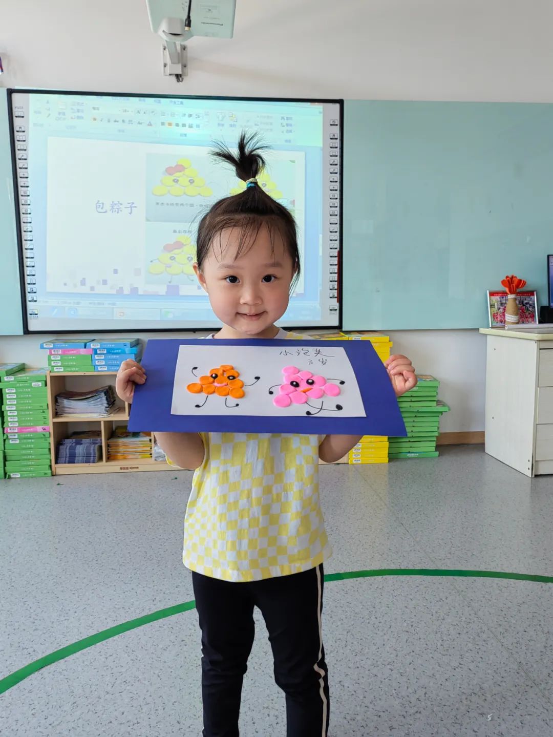 吃粽子是端午节必要的习俗,户外活动结束之后,我们开始了另一个跟端午习俗相关的室内美劳活动——《会跳舞的粽子》。