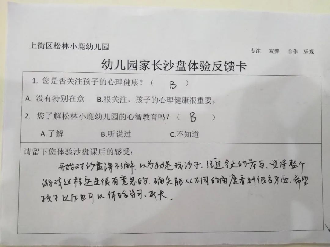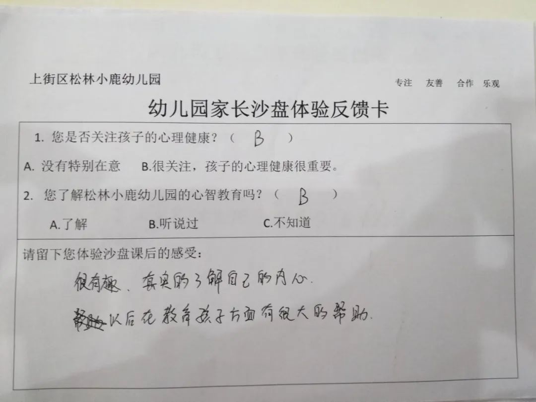通过本次沙盘游戏体验,家长更深入了解了儿童心理沙盘游戏。在触摸沙子的过程当中,体验心理能量的流动,将大量与现实和幻想层面相关的沙具,放置于沙盘中,呈现内心世界,让我们更容易察觉到游戏者的心理需求。