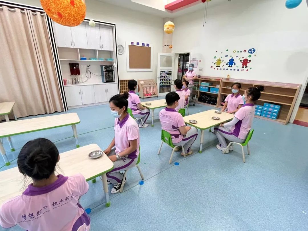 幼儿避免面对面就餐和扎堆就餐,就餐间隔在1米以上,就餐中不交流、少说话,避免交叉感染。
