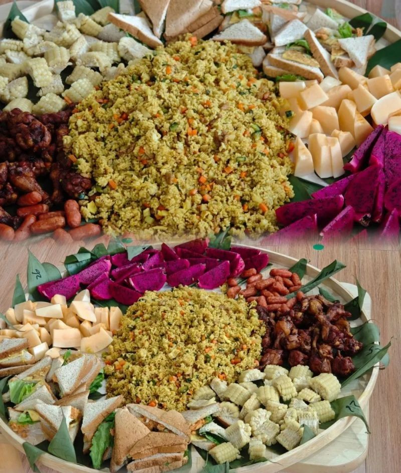 玩累了?别担心!一场丰盛的端午簸箕宴正等着大家!清香软糯的咖喱饭、鲜香四溢的鸡腿、爽口的水果……各色端午美食齐聚一堂,用舌尖上的美味为这场游园会画上完美句号!