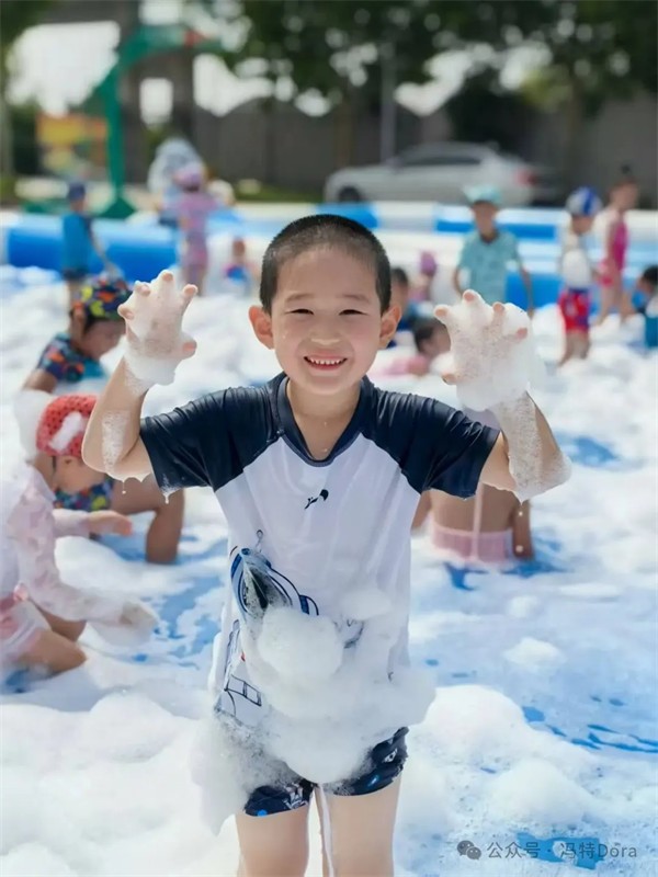 夏天就是要尽情撒欢!在软绵绵的泡沫海洋里打滚,和小伙伴来一场水枪“激战”,再坐上皮划艇感受水波的力量——跑、跳、平衡、协作……在笑声中锻炼运动细胞,这才是童年该有的活力!