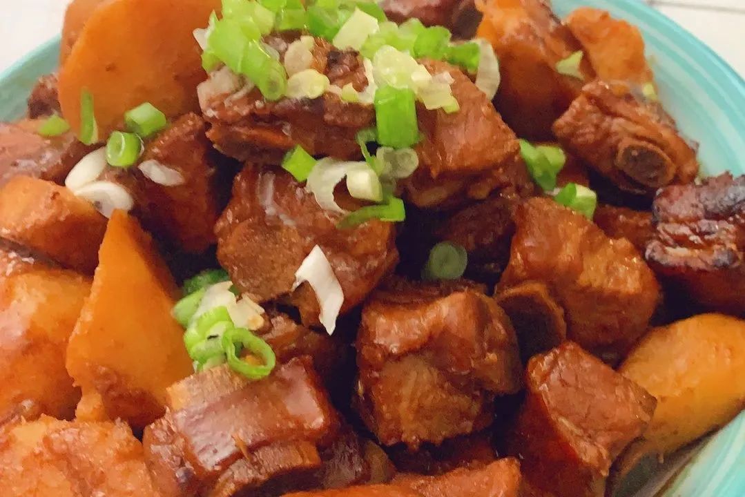 午餐:香米饭、芋头烧排骨、青菜烧腐竹、珍菌蔬菜汤