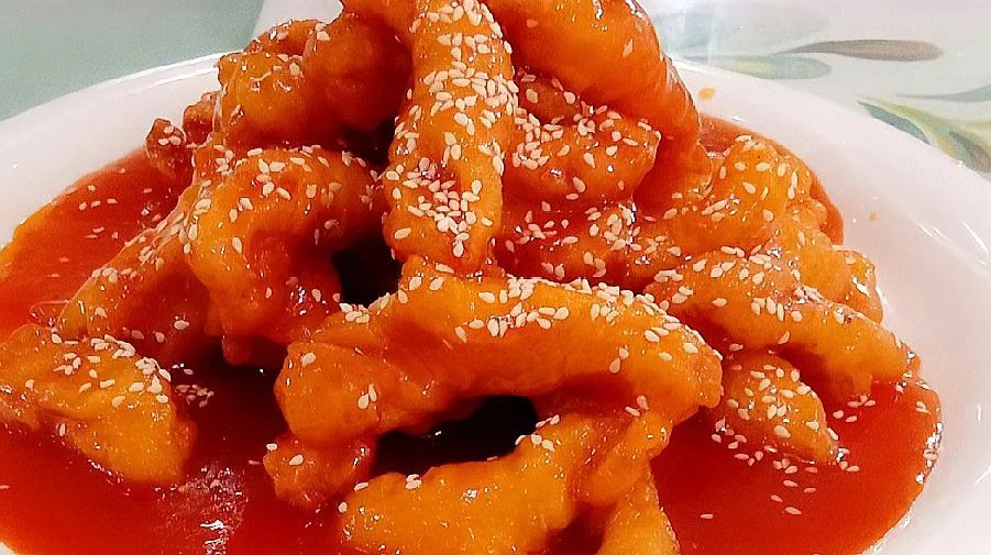 午餐:米饭、糖醋里脊、杏鲍菇炒西兰花、紫菜汤