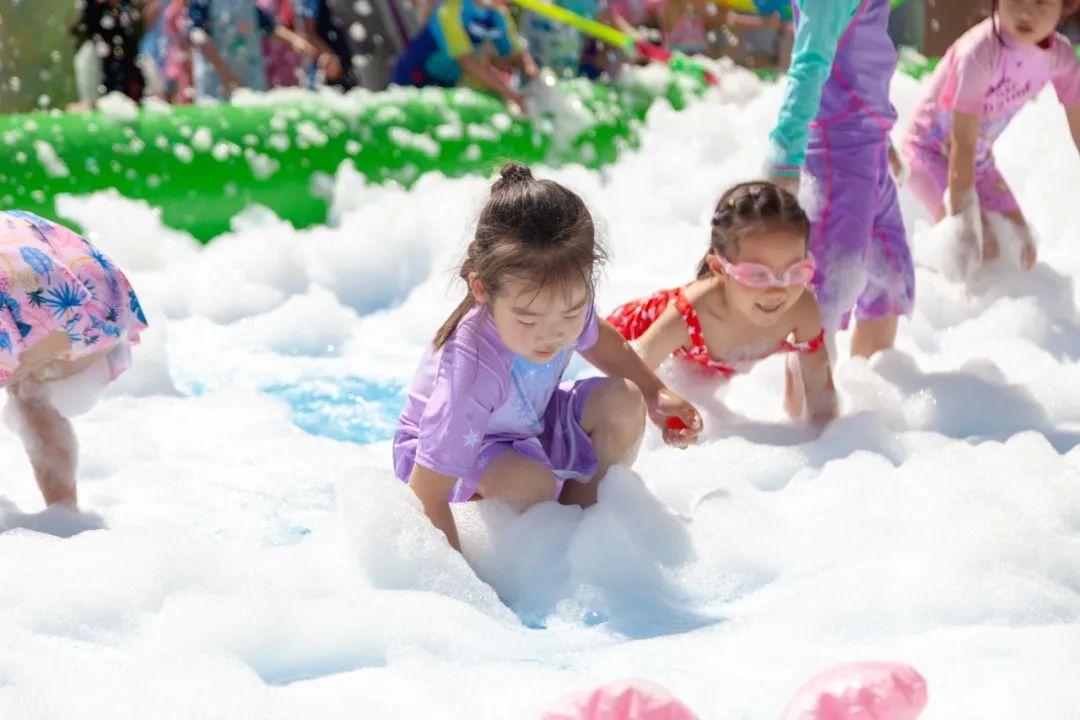 夏日炎炎漫天“飞雪”,是不是感觉既神奇又浪漫呢?当大朵大朵的白色“雪花”袭来时,宝贝们纷纷追赶着泡泡,完全享受这泡沫世界带来的乐趣,也许这就是童年该有的样子吧~