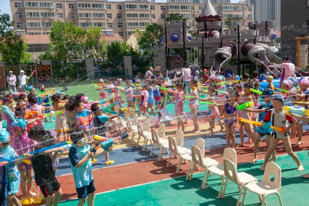游戏过后,“水枪大战”正式拉开帷幕,水枪、水蛋齐上阵。主持人一声令下,活动场地顿时水花四起,欢呼雀跃!萌宝们在尽情的打着水仗,奔跑着,呼喊着,每个人都使出全身的力量进行“对抗”,完全沉浸在水的欢乐世界。