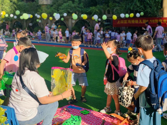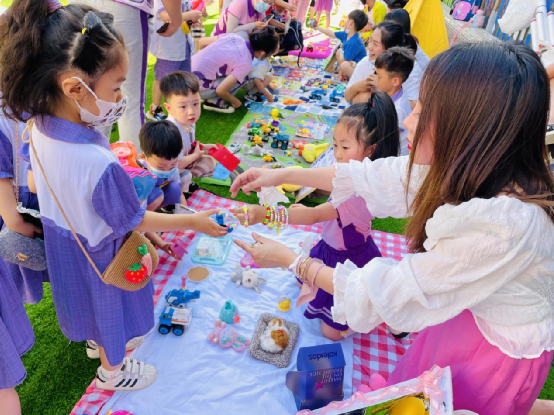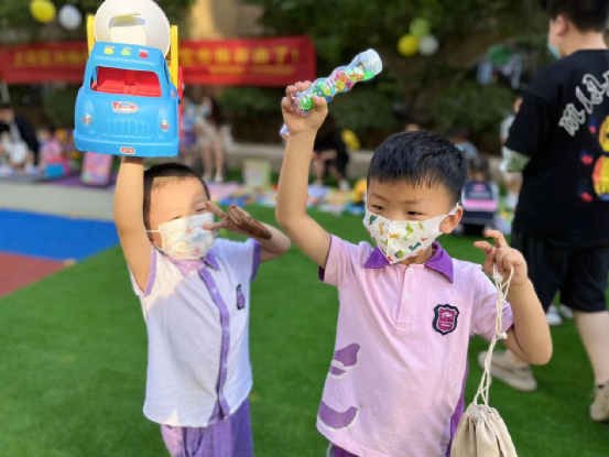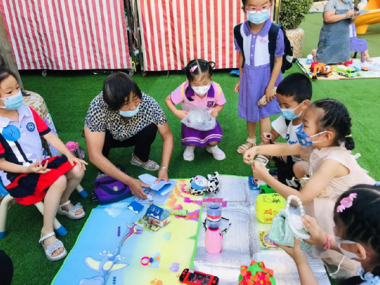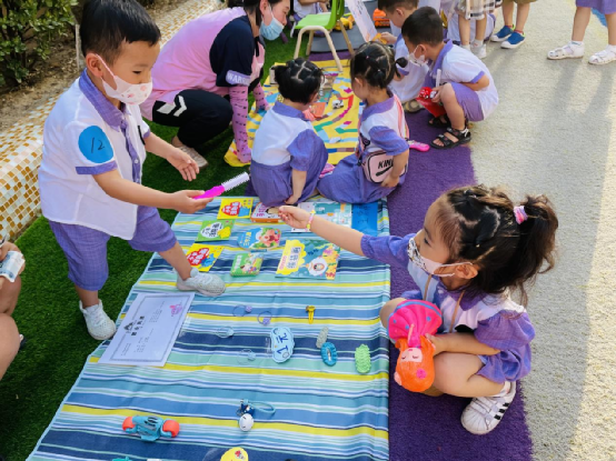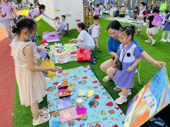 6月17日下午,参与售卖的家长络绎不绝的来到园内,可谓是人流涌动,热闹非凡,幼儿园的操场摇身一变,变成了孩子们的“小小世界”。一个个“摊位整齐干净”,有玩具、图书、小饰品等琳琅满目。叫卖声、讨价还价声、欢笑声......