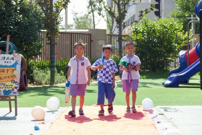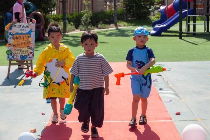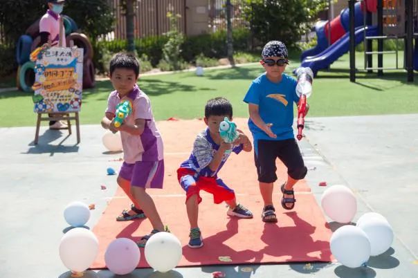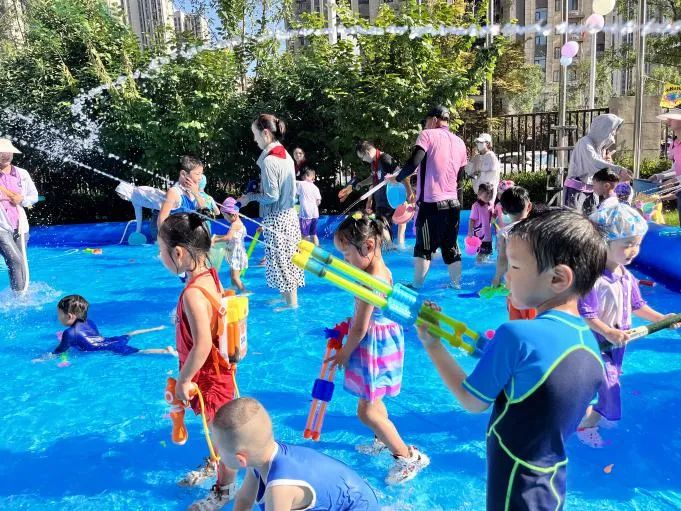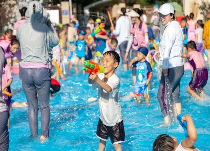 现在,到了我们自由的水枪大战环节,孩子们都拿出了自己的武器——水枪,孩子们个个全副武装,准备开启“战斗”模式。各色泳装宝贝,像一个个跳动的“彩色音符”。一场不分班级、不分师生和家长的打水仗盛宴正式拉开帷幕戏水大战让每一个孩子化身成勇敢的小战士,不畏“枪林弹雨”,勇敢向前冲。