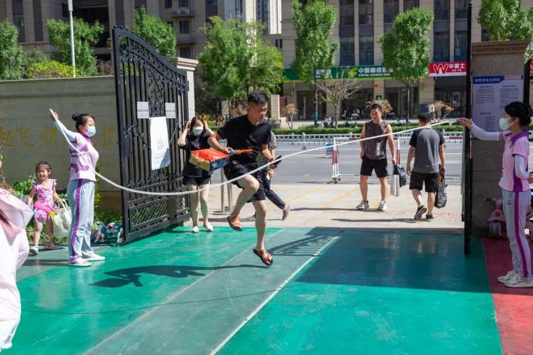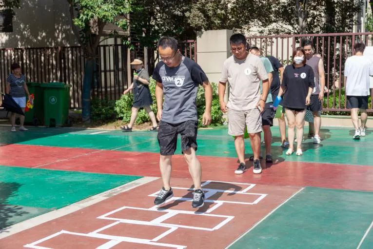 在活动开始之前,我们的老师在门口有序的组织家长进行有趣的小游戏,跳大绳,跳格子。每一位大朋友都很配合,完成度非常高。