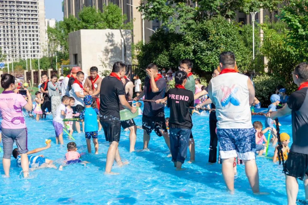 接着,第二个游戏叫做《水上拔河》,这个游戏是比团队之间的协作配合默契的游戏,看第一队的大朋友和第二队的大朋友之间的团队精神都非常的nice。为了自己组能够获得胜利拼劲全身力气,究竟哪一组的大朋友会获得胜利呢?那我们一起敬请期待吧。