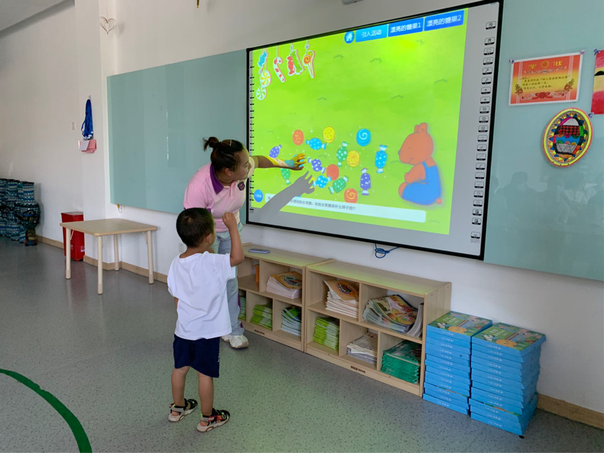 在活动中,老师带领孩子进入奇妙的糖果世界,通过对糖果的颜色、大小、形状、数量、长短的判断,总结出图案在横向、纵向上的排列规律,完成按规律填补空缺的游戏任务,逐步提高他们解决图形方面问题的能力。