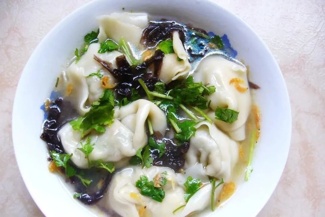 午餐:鸡汤猪肉虾皮馄饨、葱油饼