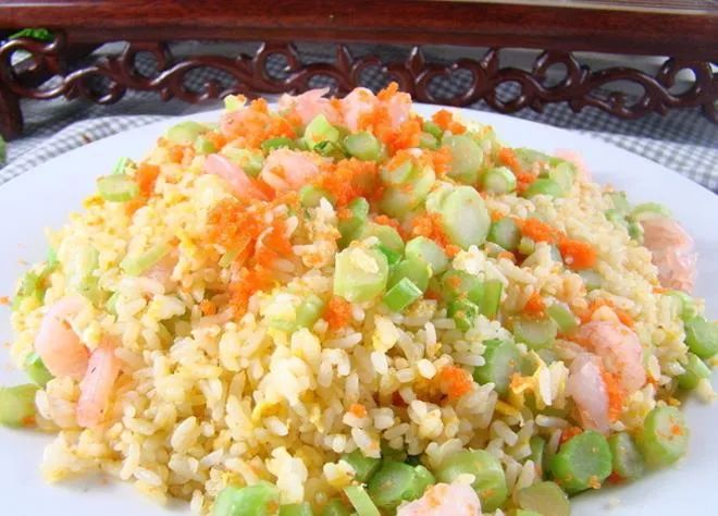 午餐:扬州海鲜炒饭、卤琵琶腿、虾皮紫菜汤