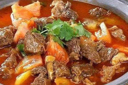 午餐:二米饭、西红柿烧牛腩、耗油生菜、香菜海带豆腐汤