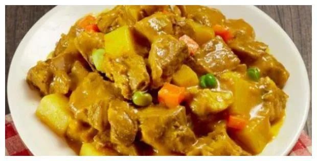 午餐:二米饭、咖喱土豆鸡块、蒜蓉小白菜、海带冬瓜汤